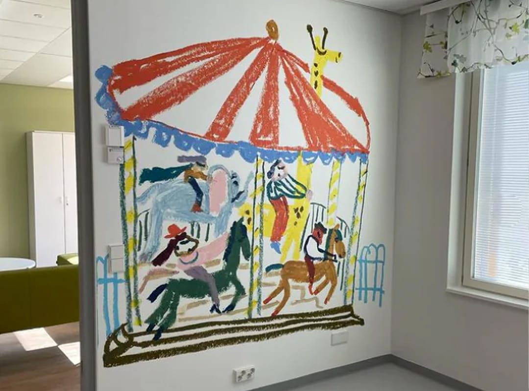 Illustrator Marika Maijala has beautifully adorned the Satapsykiatria Psychiatric Hospital in Pori, Finland, with wall illustrations using her beloved oil pastels. Her mission: to bring joy and hope to the children’s psychiatric ward and its visitors, a task she embraced with unwavering dedication. Thanks to the collaborative efforts of Marjo Heino and Kristiina Tynjälä, this project radiates positivity and artistic transformation, leaving a lasting impact on all who experience it.