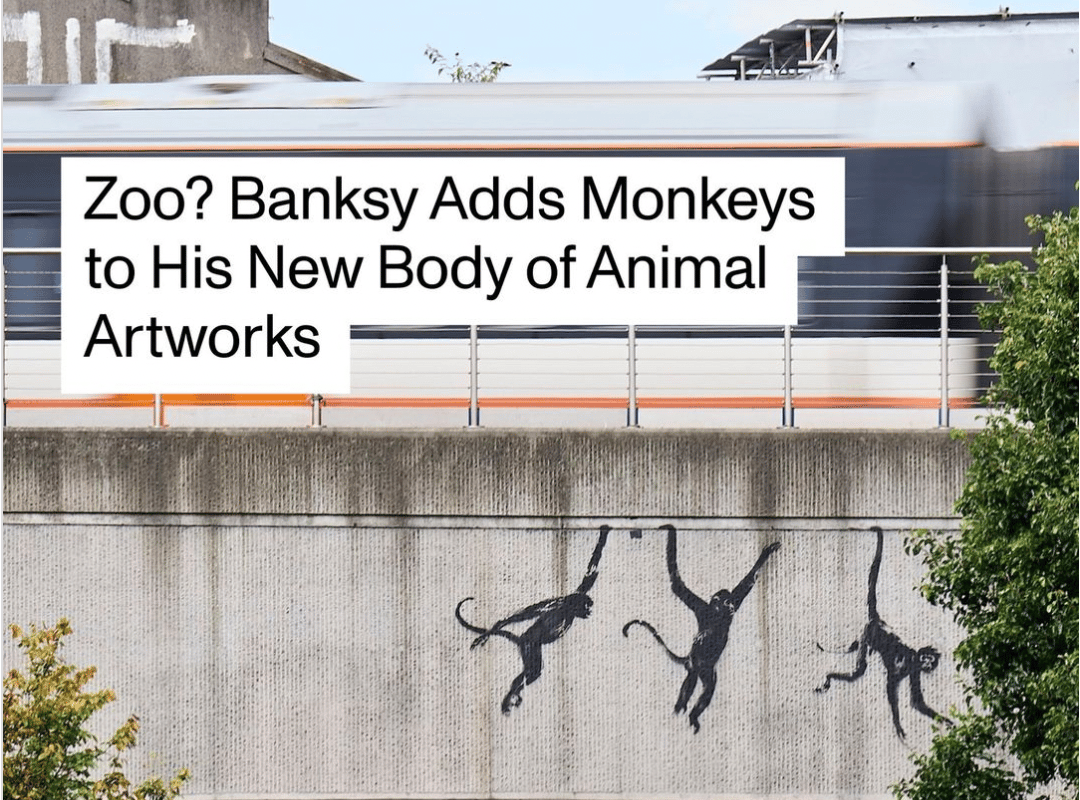 Swinging into the spotlight, three monkeys have taken centre stage on an overpass above South London’s Brick Lane, as revealed on Banksy’s Instagram—a signature move for the elusive artist. This announcement comes shortly after Banksy’s mural depicting a goat in a precarious balance was revealed near Kew Bridge in Richmond. Another portrayal of two elephants on a Chelsea building also popped up on his Instagram feed last week, making this the artist’s third reveal.