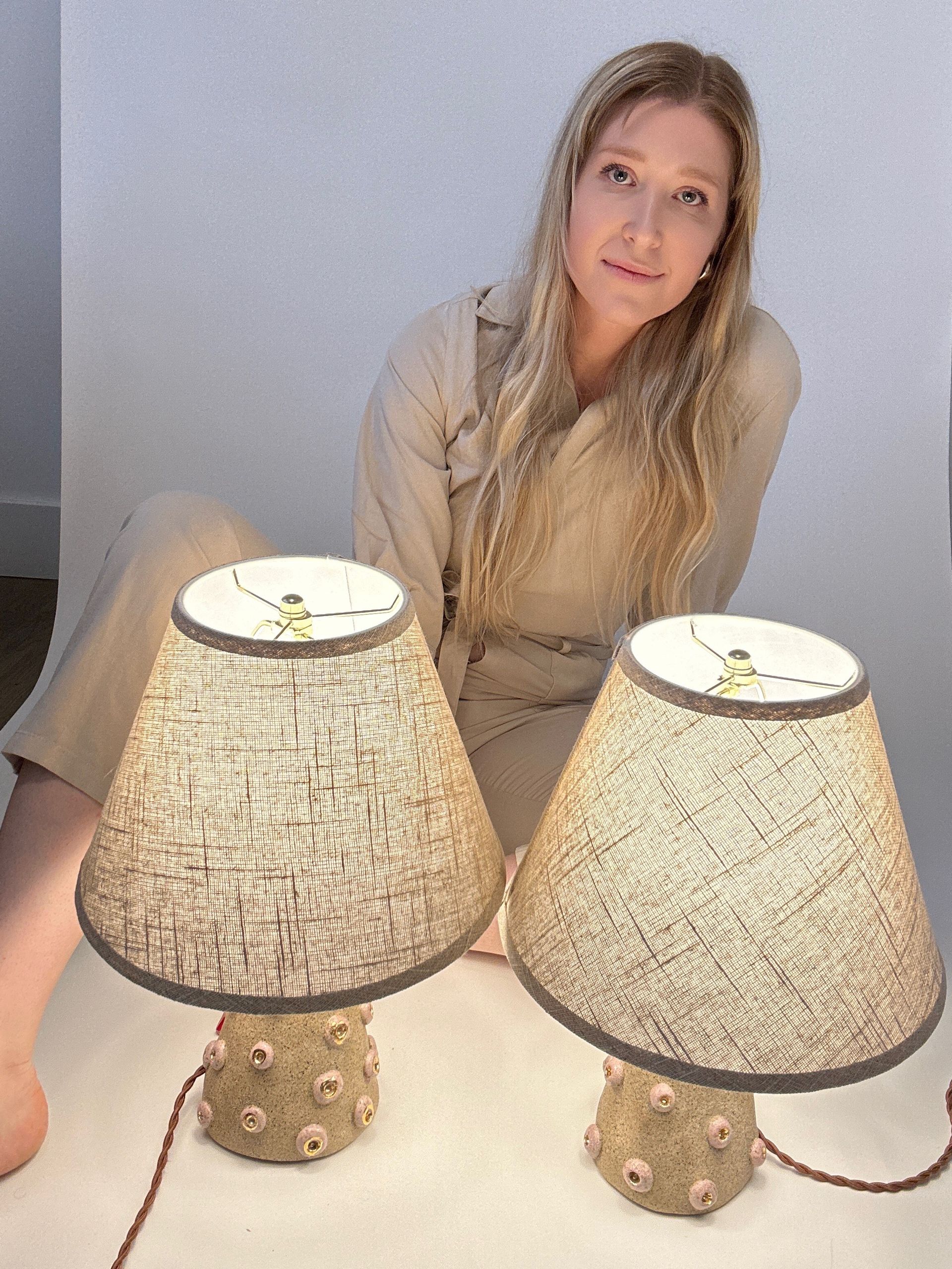 We are excited to team up with Studio J.E.D. for this Art Girl Fax issue. Studio J.E.D. was founded in early 2025 when ceramic artist Jen Dwyer moved from rural Connecticut to move in with her them boyfriend and soon to be husband Brooklyn. In a tiny apartment under the rumble of the Bushwick train, surrounded by moving boxes and uninspiring Amazon lamps she asked herself a life-changing question: “What if I made the lighting I wish existed?”. The next day she began sculpting soft, organic, deeply handmade ceramic lighting meant to bring calm and beauty into everyday spaces. Only a couple of months after creating her first piece — the now-beloved Kusama Lamp — Dwyer was invited into a group exhibition at Bergdorf Goodman, curated by Natasha Roberts where most of her lamps sold out repeatedly. The momentum set the foundation for a growing collectible lighting studio grounded in craftsmanship, texture, and sculptural design. Working from her Brooklyn studio, Dwyer is now developing her second collection and preparing for her upcoming exhibition at ICFF in May 2026 and if you like to get an idea of her work (and the iconic lamps….), find more info here.