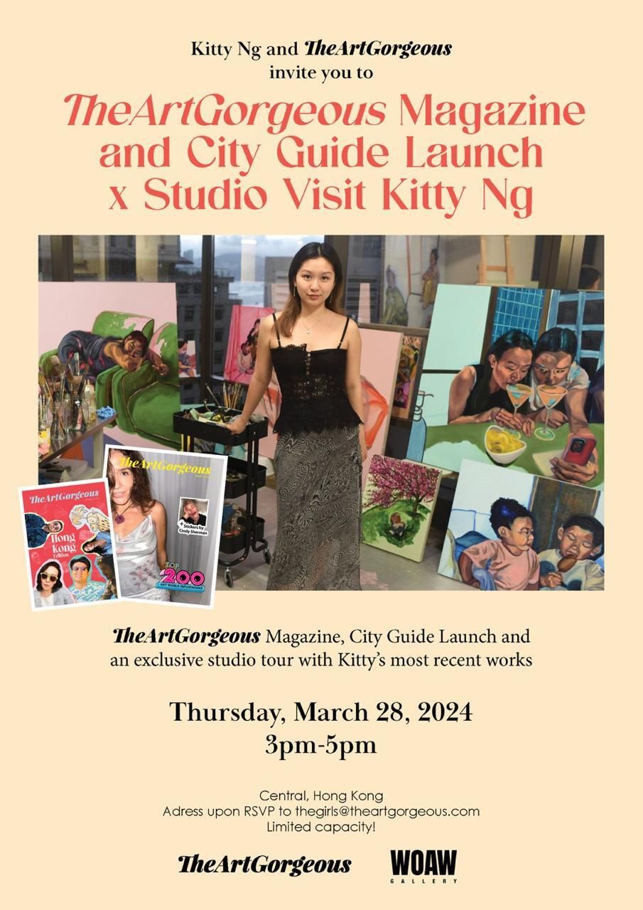 we are teaming up with the amazing painterKitty Ng for the launch of your beloved TheArtGorgeous Magazineas well as the TheArtGorgeous City Guide Hong Kong. Location: still a secret but it's in Central ;) Thursday, March 28th 20243 pm - 5 pmRSVP* to [email protected] with Hong Kong in the subject please, and we will send you the location. Limited capacity. Come celebrate with us, after a successful art week, sold-out booths, the best parties, and mingle with your fave humans from the creative sphere.